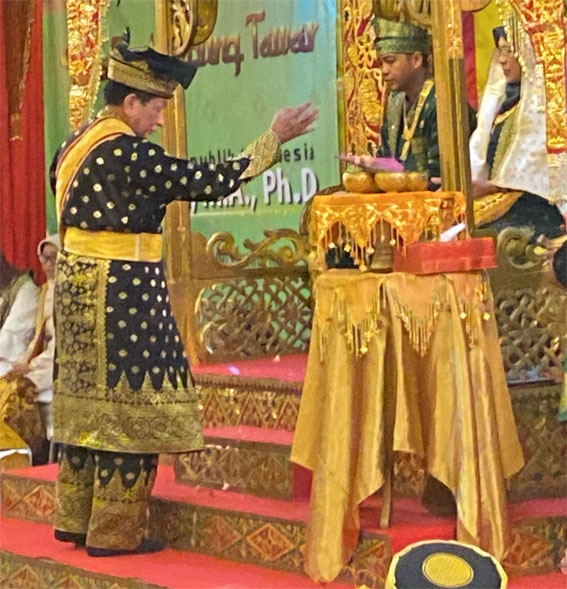 RiauKepri.com, PEKANBARU- Usai ditepuk tepung tawar, bersama isterinya, Menteri Kehutanan Republik Indonesia (RI),
