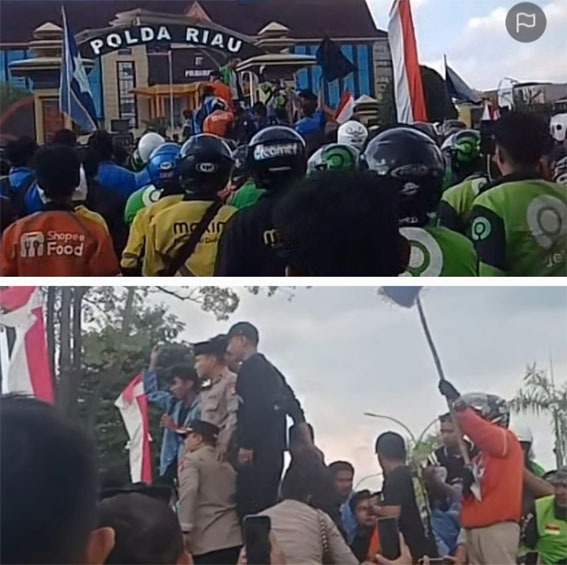 Aksi solidaritas para pengemudi ojek online di Pekanbaru siang itu bergabung dengan massa mahasiswa. Mereka bergerak menuju Mapolda Riau di Jalan Sumatera. Di sana, Kapolda Riau Irjen Pol. Dr. Herry Heryawan, M.Hum., turun langsung menyambut mereka. Tak dari balik pagar, tapi dari atas mobil komando para demonstran.