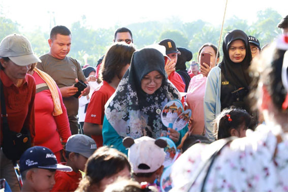 “Baru tiga bulan saya jadi Bupati. Mohon maaf belum banyak yang bisa saya lakukan. Tapi hari ini, saya dan suami senang bisa berbaur bersama rakyat, meski panas bedengkang,” katanya.