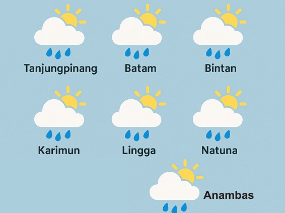 RiauKepri. KEPRI — Masyarakat Kepulauan Riau diimbau untuk menyiapkan payung dan jaket ringan menjelang aktivitas siang sampai malam ini. Berdasarkan prakiraan BMKG, daerah seperti Batam, Bintan, Karimun, dan Lingga berpotensi diguyur hujan lokal ringan terutama antara siang hingga sore hari.
