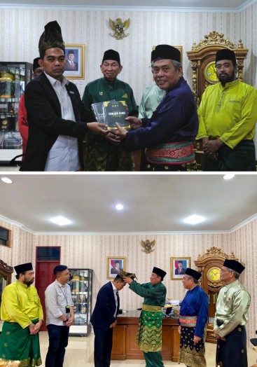 Sebagai bentuk penghormatan, GM Bandara SSK II turut dipasangkan tanjak, penutup kepala khas Melayu. Pertemuan berlangsung hangat dan penuh nuansa budaya.