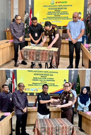 Penandatanganan dilakukan oleh Branch Manager BRK Syariah Siak Sri Indrapura Jon Hendri bersama Kepala Kejaksaan Negeri Siak Heri Yulianto. Kerja sama ini menjadi bagian dari upaya bersama dalam menghadirkan solusi penyelesaian pembiayaan yang lebih optimal, berkeadilan, dan sesuai ketentuan hukum yang berlaku.