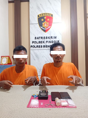 RiauKepri.com.BENGKALIS – Pengembangan kasus narkotika oleh jajaran Polsek Pinggir kembali membuahkan hasil. Dua orang pelaku berhasil diamankan dalam penggerebekan yang dilakukan pada Sabtu, 25 April 2026 sekira pukul 23.30 WIB di Jalan Joyo Km 27, Desa Tasik Serai Barat, Kecamatan Talang Muandau, Kabupaten Bengkalis.
